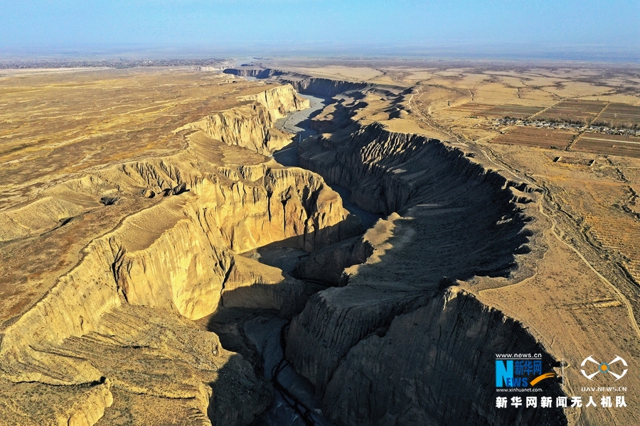 馬營(yíng)河大峽谷發(fā)源于祁連山脈,屬黑河支流,長(zhǎng)度約20公里,深度超過300米。峽谷水源以祁連山冰雪融水及降雨補(bǔ)給,主要灌溉張掖市高臺(tái)縣紅沙河村和酒泉市肅州區(qū)屯升鄉(xiāng)、清水鎮(zhèn)一帶農(nóng)田。新華網(wǎng)發(fā)(鄭耀德 攝)