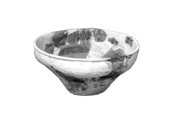 這件彩陶盆發(fā)現(xiàn)于武威市磨嘴子遺址。1991年春天,正在進行文物普查的人們在甘肅武威市新華鄉(xiāng)磨嘴子遺址采集到一批殘破的彩陶片。返回室內(nèi)整理時,發(fā)現(xiàn)這些彩片屬同一個體,遂多次前往該址,反復(fù)尋找缺失的殘片。功夫不負有心人,最終使這件陶器大體得以復(fù)原。最終能拼出一個彩陶盆,命名為舞蹈紋彩陶盆。