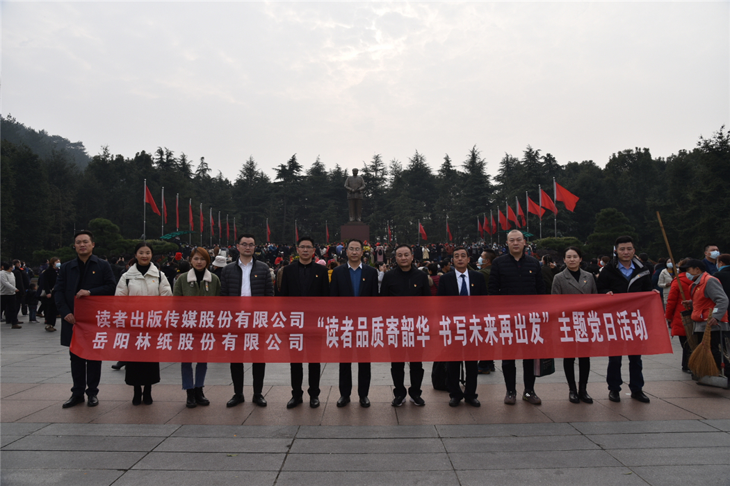 12月26日,是毛澤東主席誕辰127周年。讀者出版?zhèn)髅焦煞萦邢薰九c岳陽(yáng)林紙股份有限公司在湖南韶山黨性教育基地,開展了“讀者品質(zhì)寄韶華,書寫未來再出發(fā)”聯(lián)合主題黨日活動(dòng),并現(xiàn)場(chǎng)聆聽黨課。