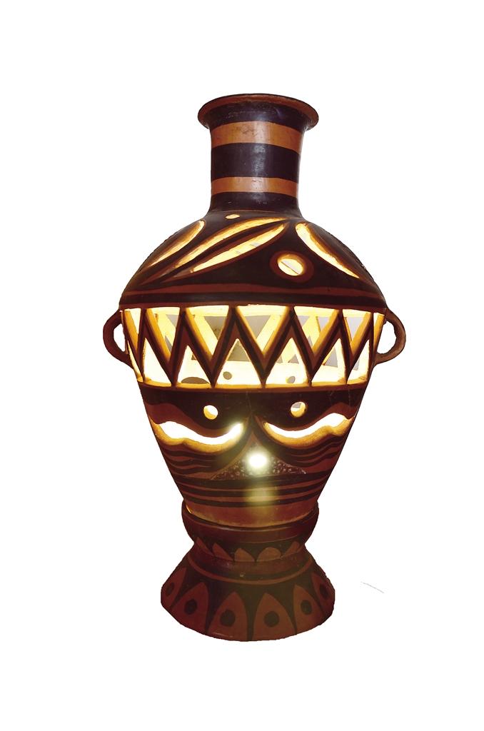 六、燒制:敷彩后的陶坯入窯內密閉,用柴火煅燒。出窯后,用水砂紙等輕輕打磨,去掉附著物。