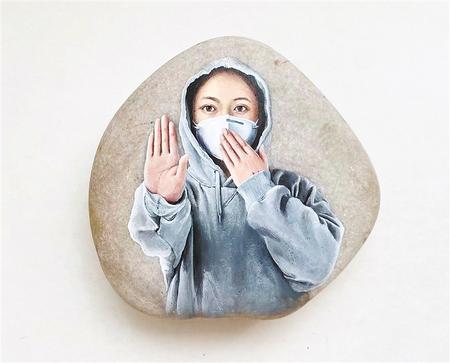 現(xiàn)在,馬玉蘭已完全掌握了“石畫(huà)”的技巧,跟隨石頭的形狀走勢(shì)設(shè)計(jì)畫(huà)面,利用凸出的部分打造光澤感,落筆時(shí)精準(zhǔn)控制力度,她將疫情之下平凡人的神韻生動(dòng)地體現(xiàn)在每一次運(yùn)筆中。