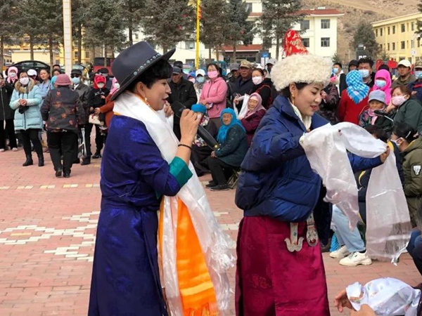 肅南縣民族歌舞團在鄉(xiāng)鎮(zhèn)慰問演出。肅南縣民族歌舞團供圖