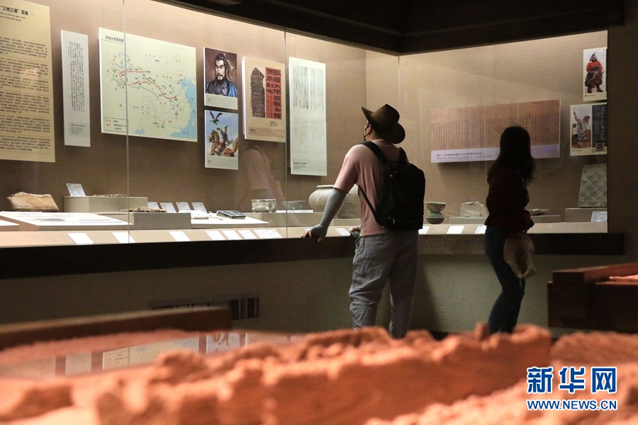 5月15日,游客在甘肅省敦煌市博物館參觀文物展。新華網發(fā)(張曉亮 攝)