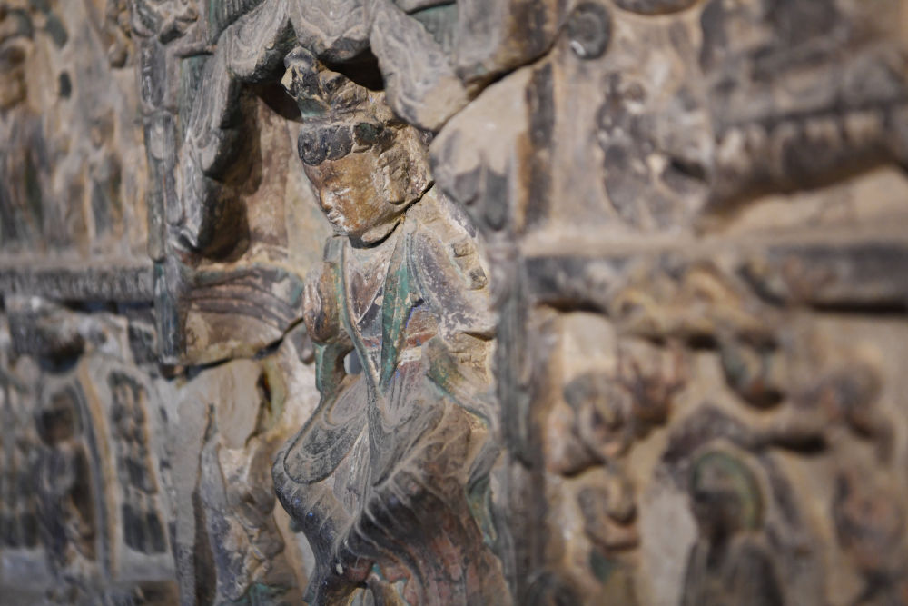 這是麥積山石窟第133窟內(nèi)的造像碑局部(6月9日攝)。新華社記者 陳斌 攝