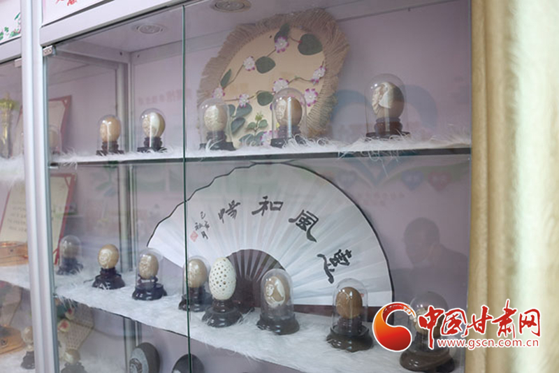 自2018年開(kāi)始,蘭州新區(qū)新安社區(qū)為劉財(cái)萬(wàn)的蛋雕作品專(zhuān)設(shè)了社區(qū)展柜,劉財(cái)萬(wàn)可以為前來(lái)參觀的人們講解作品內(nèi)涵、展示創(chuàng)作過(guò)程。對(duì)劉財(cái)萬(wàn)來(lái)說(shuō),這不但可以更好傳播蛋雕文化,也是分享自己生命體悟、生活方式的一個(gè)出口。