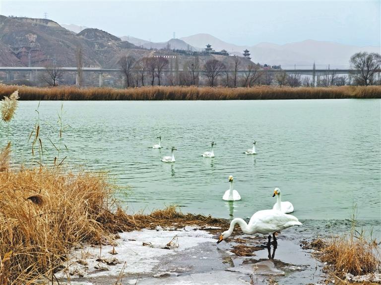 蘆葦蕩漾,天鵝棲息。近日,位于蘭州市西固區(qū)達川鎮(zhèn)的三江口天鵝灘,再次迎來了越冬的天鵝們。