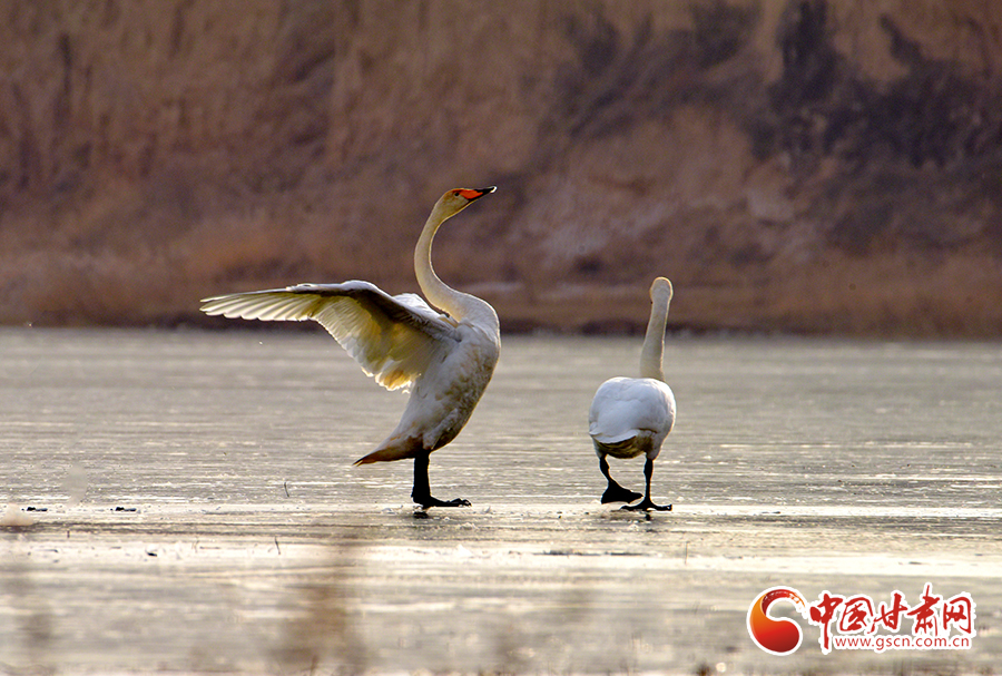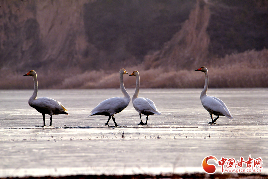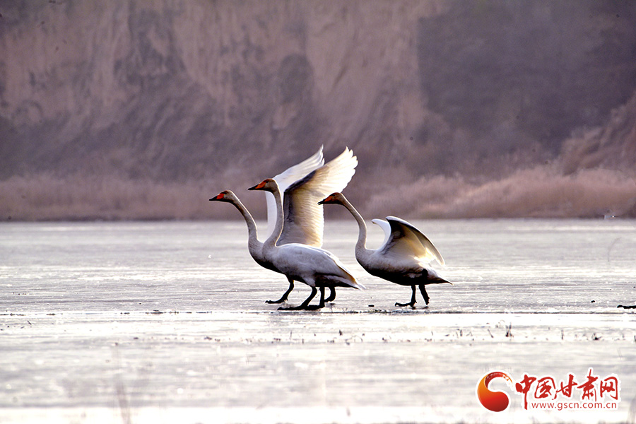 初冬,位于平?jīng)鍪徐o寧縣境內(nèi)的懸鏡湖迎來白天鵝在此組團(tuán)落腳,這是今年以來天鵝首次“光臨”懸鏡湖。