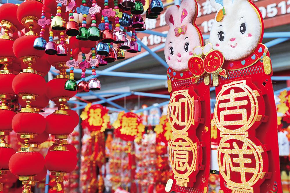 原標(biāo)題:“兔元素”走俏年貨市場(chǎng) 濃濃年味撲面來