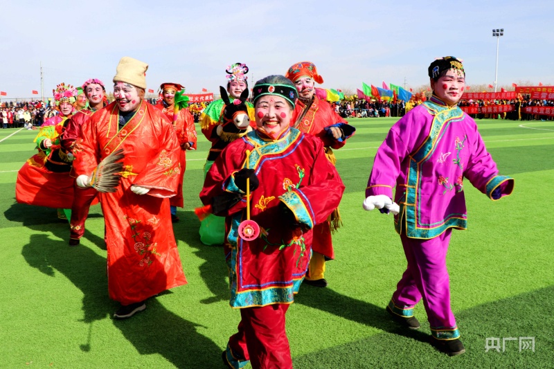 元宵佳節(jié),甘肅民勤年俗活動(dòng)迎來(lái)“狂歡”,一場(chǎng)熱熱鬧鬧的社火秧歌匯演在民勤縣東湖體育公園拉開帷幕。