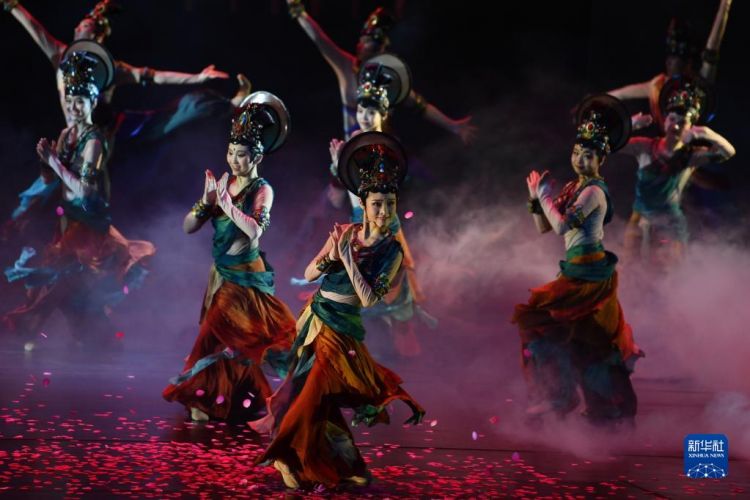 中國殘疾人藝術(shù)團演員在敦煌大劇院表演大型情景音畫劇《千手千眼》(6月18日攝)。