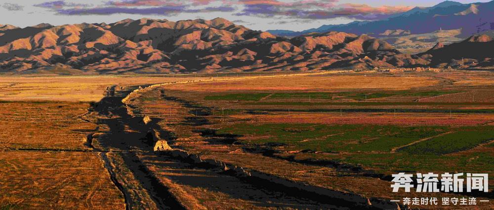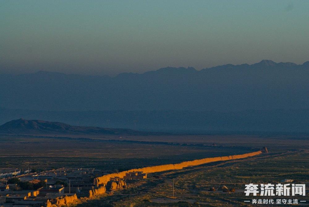 祁連山下,甘肅山丹漢明長(zhǎng)城猶如一條巨龍蜿蜒盤(pán)旋在漫漫戈壁。