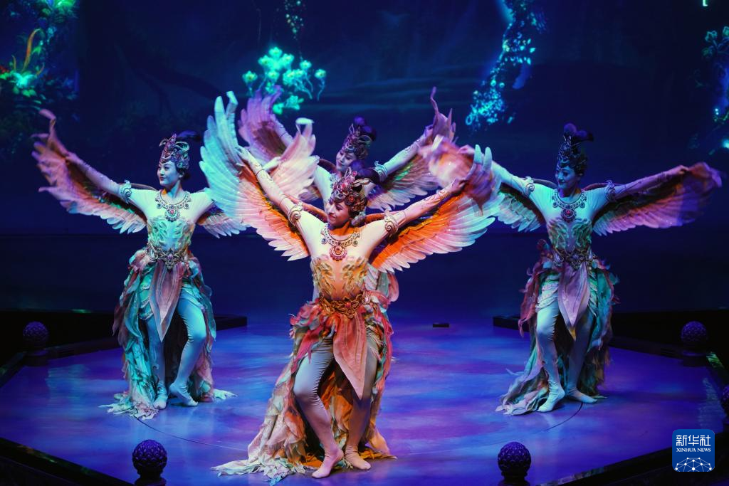 8月9日,演員在《樂(lè)動(dòng)敦煌》中表演。新華社記者 馬寧 攝