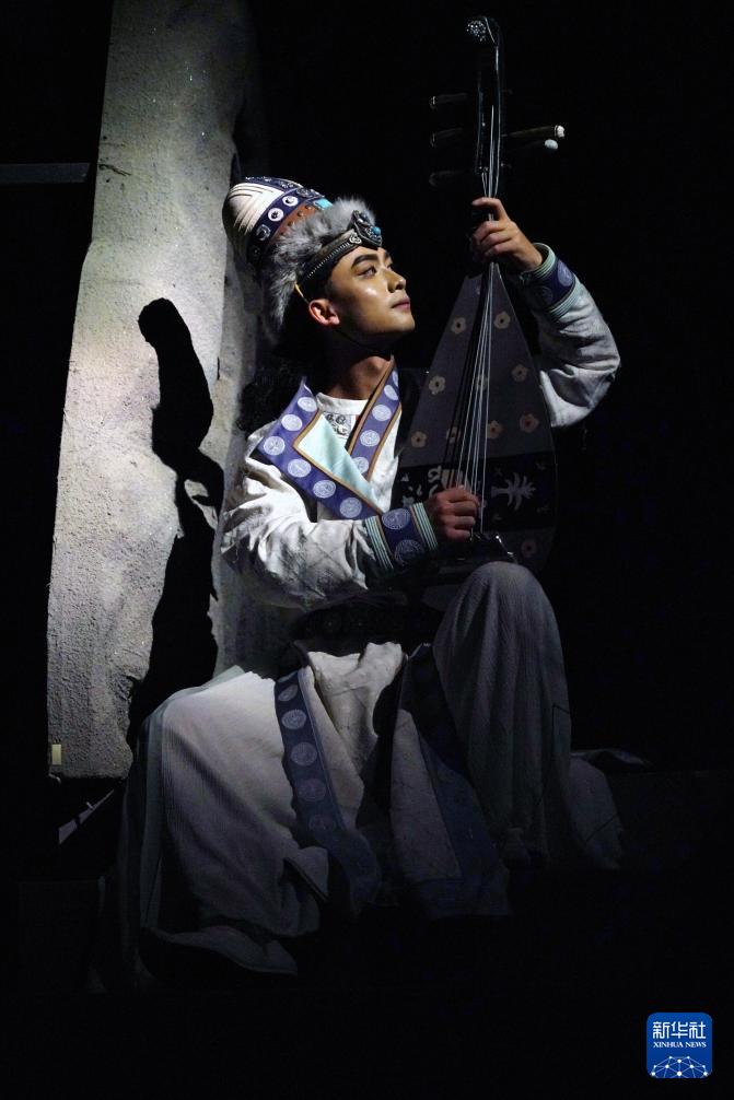 8月9日,在《樂(lè)動(dòng)敦煌》演出現(xiàn)場(chǎng),敦煌古樂(lè)全球推廣大使、國(guó)樂(lè)藝術(shù)家方錦龍演奏琵琶,為舞蹈演員伴奏。新華社記者 馬寧 攝
