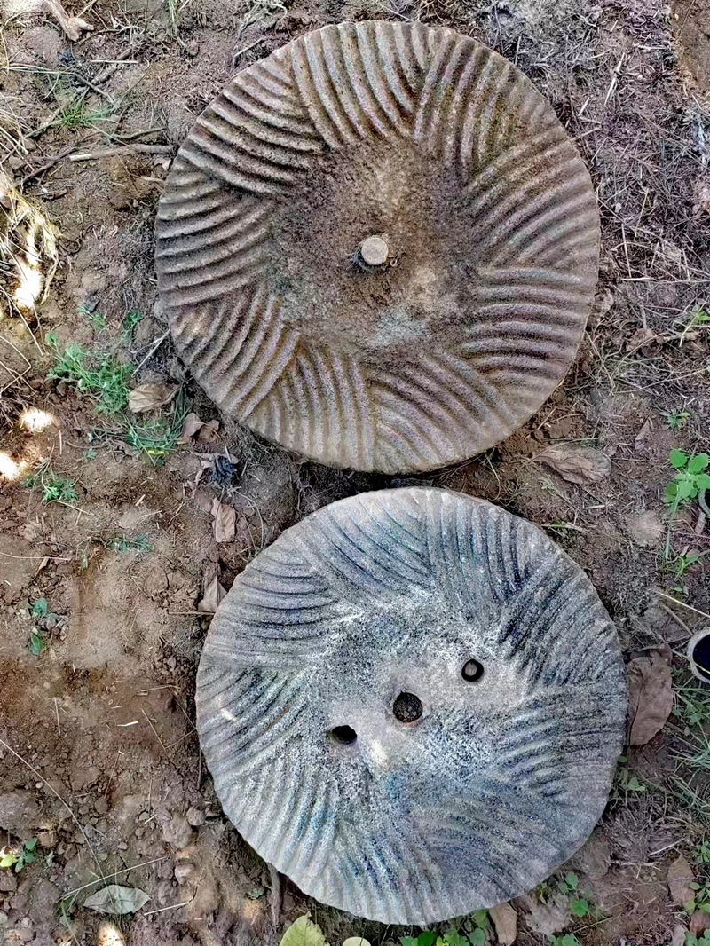 家鄉(xiāng)人有這樣一個(gè)風(fēng)俗:謂石磨為“白虎”。宅外可任意安置使用,若宅內(nèi)安置,必請(qǐng)推算具體固定方位安置,方可趨吉避兇。因而每當(dāng)“上茬”新磨時(shí),人們都要燒香叩首,在提前修好的磨盤上貼一幅“白虎臥之大吉”之類的條幅,祈求“鎮(zhèn)宅避邪,消災(zāi)降福”,求得全家幸福安康。一切準(zhǔn)備就緒后,石匠開始對(duì)上下磨扇進(jìn)行劃線。     歷代石匠,大多目不識(shí)丁,幾無(wú)量角器的概念和意識(shí),但能嫻熟地將石磨的圓周九等分。在九個(gè)扇面中,又隨形由大到小的用扇形弧將每個(gè)扇面布滿,其中81條弧就是“磨齒”。分好以后,搬來(lái)一條凳子,坐在上面,錘敲釬響,順線游走,由淺及深,“叮叮當(dāng)當(dāng)”,響聲不斷,儼然一個(gè)寒江垂釣的老者。錘子和鋼釬敲打出的音符,抑揚(yáng)頓挫,蕩漾在農(nóng)家院里。上下兩扇磨齒和溝槽鑿好后,石匠找出磨盤的中心點(diǎn),鑿出圓孔,鑲嵌上凹凸軸,將兩扇磨合到一起,從上扇孔里加進(jìn)一點(diǎn)糧食研磨一番。如有不妥,重新修齒,直到完全能用方可。