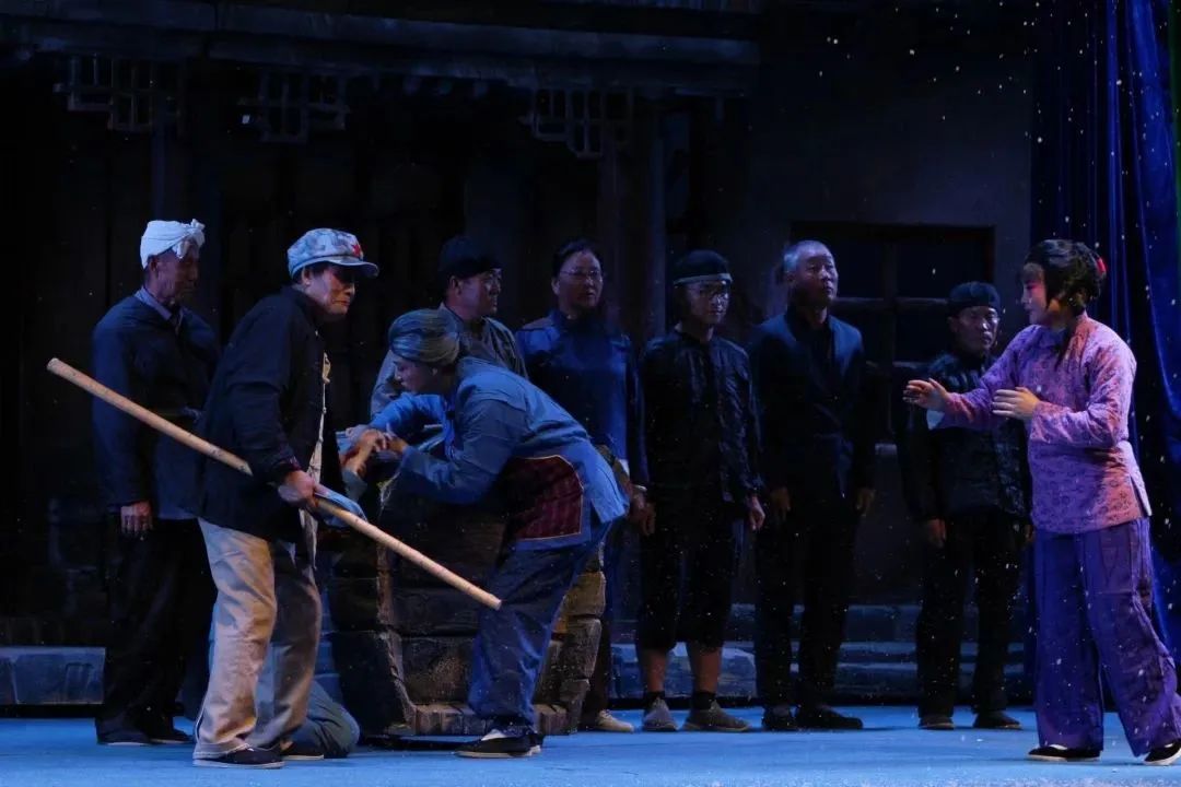 在確定排演的時(shí)候,全體演職人員自覺反復(fù)觀看視頻資料,熟背臺(tái)詞。因?yàn)槭欠?,馱營村民樂團(tuán)團(tuán)長(zhǎng)邢建寬特意邀請(qǐng)了原版的女主角何旭紅擔(dān)任導(dǎo)演為演員們排戲。