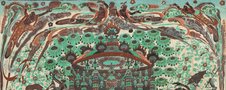 莫高窟第112窟-壁畫-主室北壁-報恩經(jīng)變之樂舞圖。(敦煌研究院供圖)