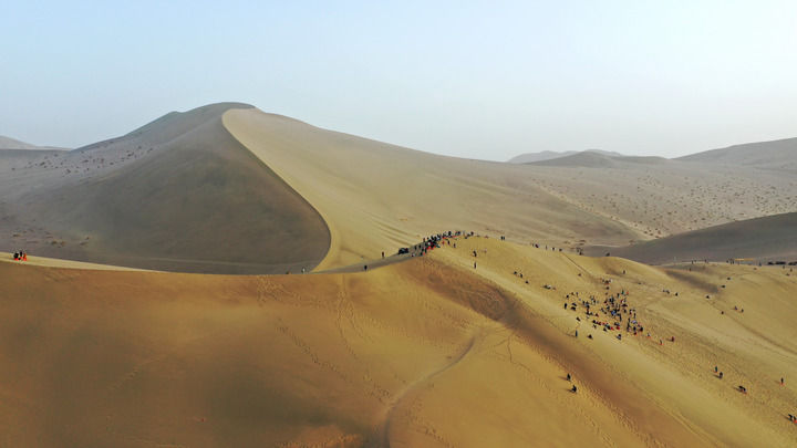 2023年4月24日,游客在敦煌鳴沙山上游玩。 新華每日電訊記者 陳斌 攝