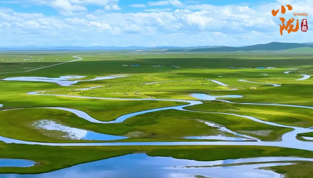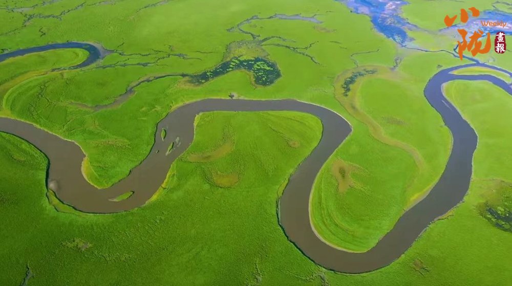 條條溪流蜿蜒縱橫,濕地沼澤星羅棋布,有牛羊信步,俊鷹翱翔,藍天白云綠地,寬廣遼闊,一望無際。