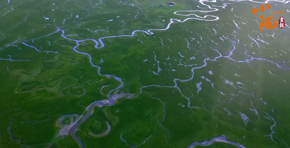 一望無際的濕地、草原穿上土黃色的外套,迎接最冬日的陽光。星星點點的冰凌閃閃發(fā)光,如同千萬顆鉆石鑲嵌在河水中。