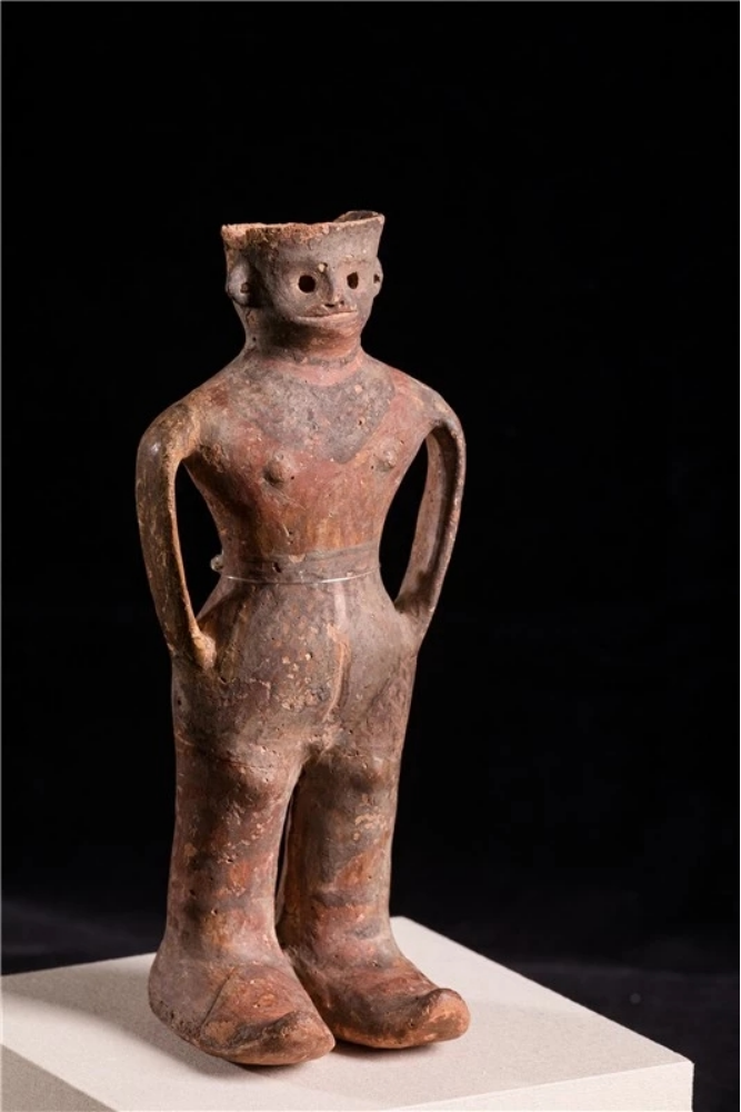 隴東有少女,而位于河西的玉門火燒溝同樣出土了一件距今3700多年的人形彩陶罐,被人們稱做“河西少年”。在2019年“少女”與“少年”這一對“金童玉女”就已經(jīng)邂逅了,2019年中國國家博物館展出“絲路孔道——甘肅文物精華展”時(shí),在展覽序廳門口了生了這樣一場友愛的“接力”。隴東大地灣的可愛“少女”——人頭形器口彩陶瓶說:“出來有一陣子了,在京城過了端午節(jié),該回家了!在京的時(shí)間雖短,但我很高興作為代表在國家博物館迎接全國、全世界的觀眾,希望還有機(jī)會可以再來!”。河西火燒溝的酷“少年”——人形彩陶罐說:“您回家了,我接替您的工作,在展覽的大門口,繼續(xù)帶領(lǐng)觀眾領(lǐng)略多彩厚重的甘肅歷史文明!”