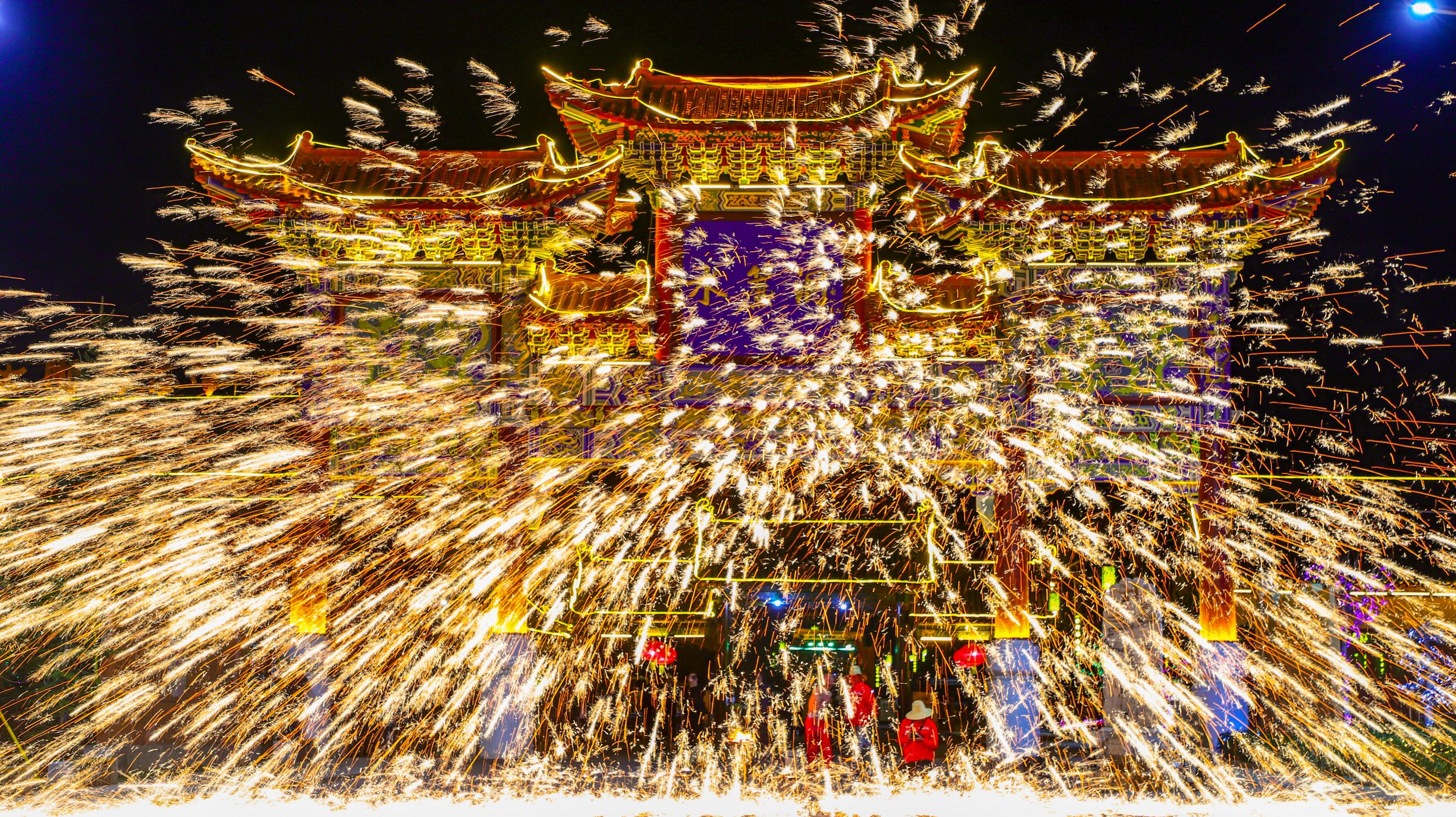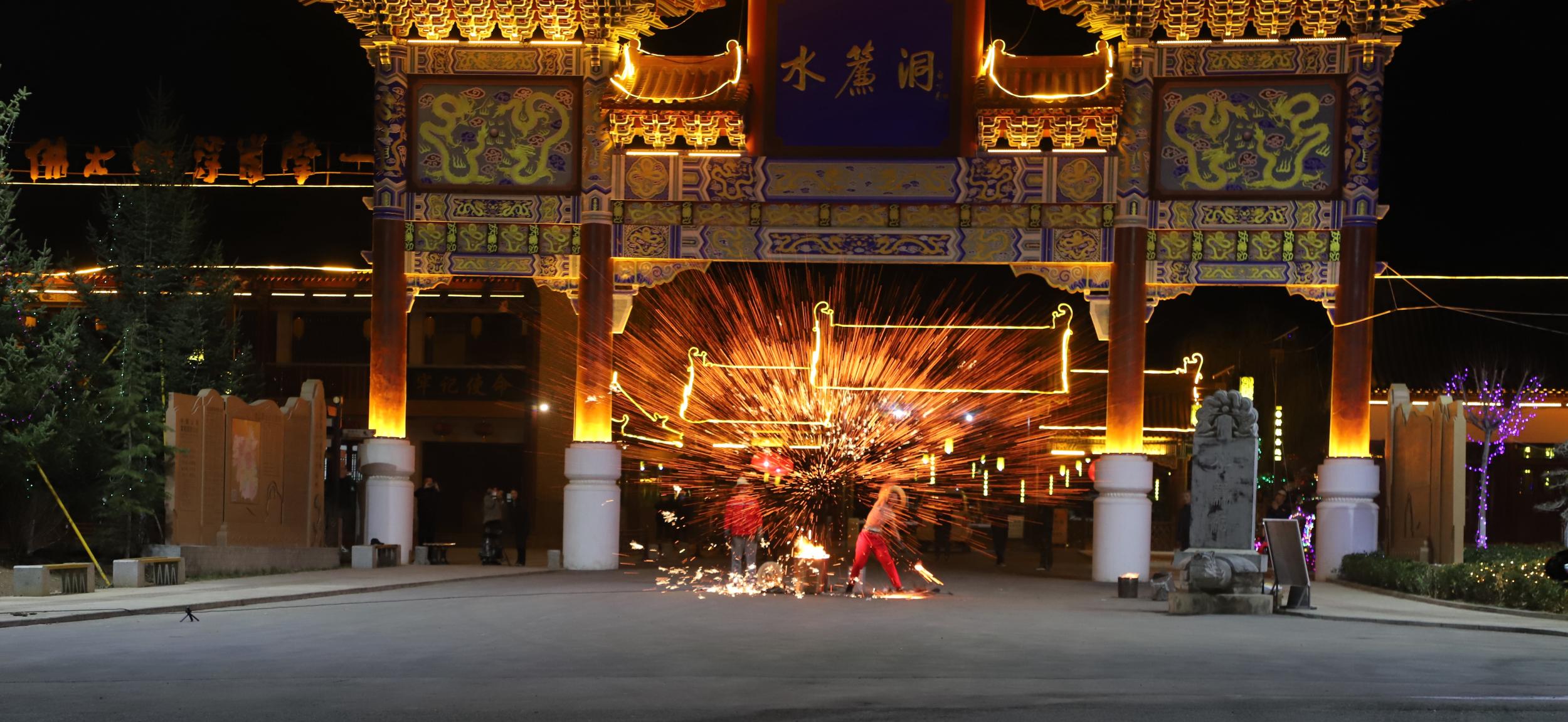 非遺絕技“打鐵花”點靚水簾洞景區(qū)不夜天
