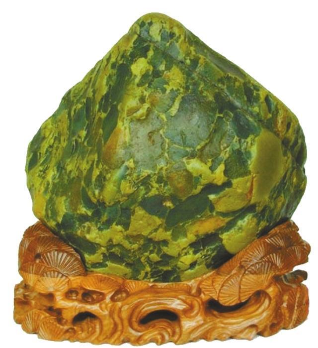 龐公石屬火山巖,質(zhì)地堅(jiān)硬,細(xì)膩濕潤,色彩豐富,深綠致密,翠碧如玉,石身間有紅、黃、白、黑等絢麗的紋理,構(gòu)成諸如古今人物、珍禽異獸、花草樹木、行云飛瀑、江河山澤等奇特紋理圖案,尤其是玉化多彩的“翠”,著實(shí)讓人心生憐愛……