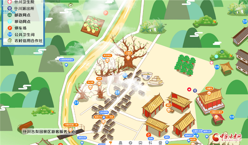 由于百年古梨園位于村落之間,占地面積大且道路蜿蜒曲折,許多外地游客在這里總會因為路況不熟或者看不懂紙質(zhì)地圖而走很多冤枉路。針對游客的這一痛點,中國移動甘肅公司蘭州分公司依托云網(wǎng)融合和數(shù)字化服務(wù)優(yōu)勢,為什川梨園及周邊景區(qū)量身打造了5G+VR手繪地圖智慧導(dǎo)覽服務(wù),根據(jù)當(dāng)?shù)仫L(fēng)格特色定制手繪地圖,展示當(dāng)?shù)鼐包c及場所地標(biāo)名稱,并可結(jié)合語音講解充分展現(xiàn)歷史背景、文物故事、人物典故等景區(qū)相關(guān)信息,真正讓每一位游客感受到“一部手機游梨園”的便利。