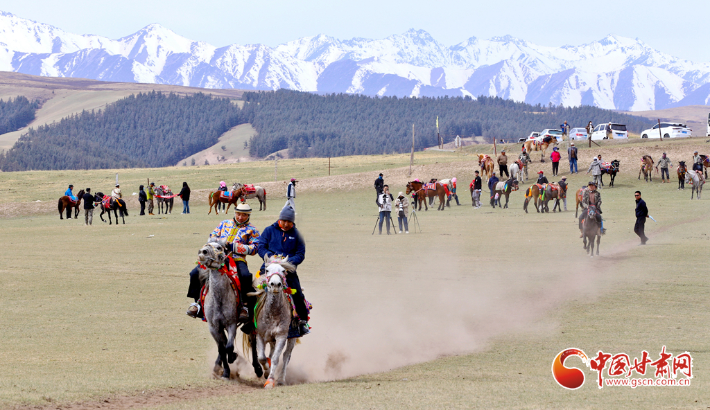 “五一”假期,甘肅省張掖市肅南裕固族自治縣康樂草原景區(qū)“民族大團結(jié)”賽馬活動拉開帷幕,騎手們在祁連山下的康樂草原上展開了民族走馬、速度賽馬角逐,吸引了眾多游客前往觀賞賽馬和領(lǐng)略雪山、森林、草原為一體的祁連山美麗景色。