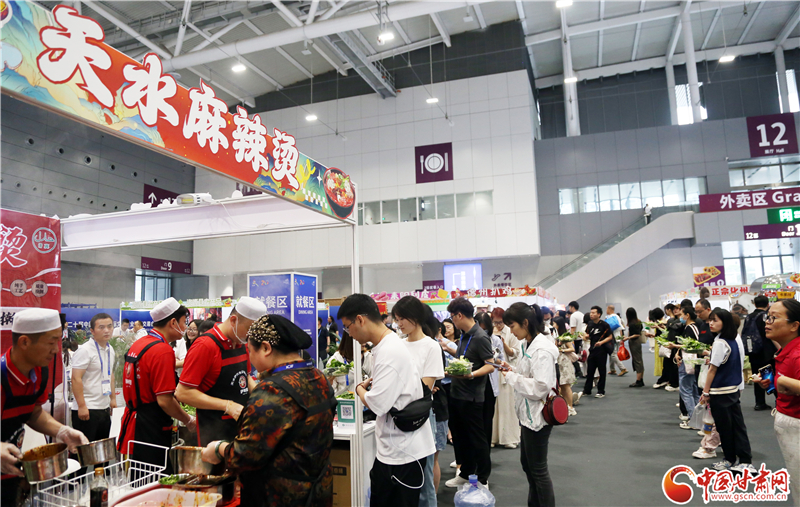 記者在現(xiàn)場看到,前往蘭州牛肉面、天水麻辣燙兩個展區(qū)品嘗美食的游客絡(luò)繹不絕。特別是在天水麻辣燙展區(qū),端著裝有各類蔬菜菜盆的食客排起了長隊,紛紛翹首以盼,期待蔬菜下鍋,一嘗“麻”“辣”美味。