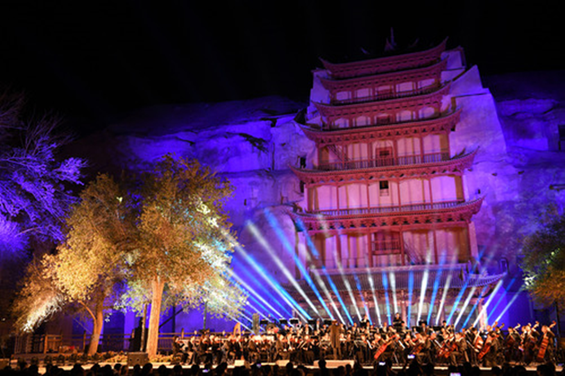 2016年9月15日,首屆絲綢之路(敦煌)國際文化博覽會系列活動之一的敦煌莫高窟1650周年紀念音樂會在莫高窟舉行。著名指揮家陳燮陽、特邀音樂家趙聰?shù)人囆g(shù)家奉上了具有絲綢之路沿線諸國特色的經(jīng)典曲目,2000余名觀眾在莫高窟九層樓廣場前追憶絲綢之路的璀璨歷史,聆聽穿越古今的藝術(shù)交響。
