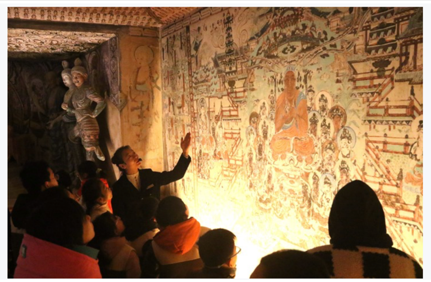 2024年,敦煌市依托當?shù)刎S富的人文遺跡和自然景觀,大力發(fā)展文化研學,建成莫高學堂、鳴沙書院等16個研學基地,推出壁畫臨摹、漢簡學堂等獨具敦煌特色的研學產(chǎn)品,讓游客和學生在參觀的同時進一步體驗敦煌文化的魅力。 據(jù)了解,敦煌市已推出冬春旅游優(yōu)惠政策,對大中小學生免市屬景區(qū)門票,莫高窟對研學團隊開放洞窟由8個增至13個,并配備資深講解員講解。