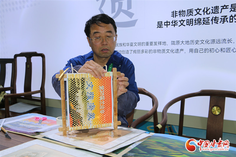 在第三十屆蘭洽會平涼館內,非遺傳承人魏巍正坐在桌前制作著泥金紙織畫。巧手之下,金色的“緯線”交織于“經線”之間,經緯交錯,乾坤自成。