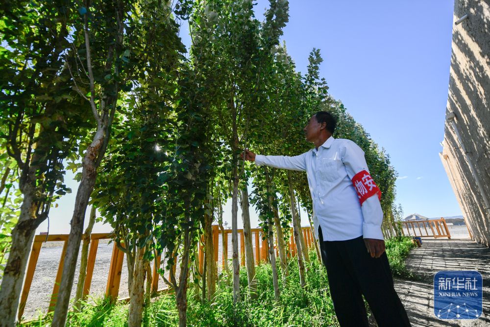 后來(lái),得益于敦煌加強(qiáng)文保力量,他的妻子聞春瑜也成為一名文保員。從此,他們夫妻二人便扎根大漠,像古代戍邊戰(zhàn)士一樣守護(hù)長(zhǎng)城。他們?cè)诜壳拔莺蠓N下白楊樹(shù),澆灌出一片菜園,為生活增添點(diǎn)點(diǎn)綠意與希望。