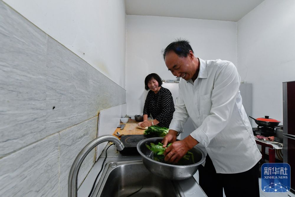 ↑7月16日,張吉全和聞春瑜在廚房洗菜和面準(zhǔn)備做飯。