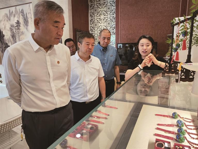劉曙光一行參觀了蘭州市博物館基本陳列《大河流韻——蘭州歷史文物陳列》的所有展覽單元和數字文創(chuàng)中心。參觀過程中,調研組詳細了解和參觀了館內的展品和陳展設計,認真聽取了開展各類社教活動的情況,對市博物館開展的各項工作予以了肯定和鼓勵。