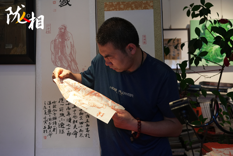 “木刻版畫最困難的步驟,就是能將原圖精準(zhǔn)復(fù)刻,在雕刻過程中,稍有不慎便會(huì)出錯(cuò),需要全神貫注投入其中,才能在刀尖上誕生出精美的藝術(shù)品。”李安樂說,拓印前要進(jìn)行刷色,首先需要制作顏料。他選擇了純色拓印,在朱砂粉中倒入明膠,加入水或酒稀釋,攪拌后顏料就制作完成了。接下來便是開始潤(rùn)板,再開始刷色,最后將紙張覆蓋在木板上進(jìn)行拓印,在拓印過程中,利用櫚擦或馬蓮進(jìn)行摩擦拓印,等這一系列操作完成后,一幅栩栩如生的木刻版畫就呈現(xiàn)了出來。