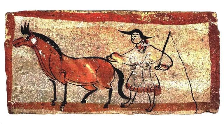 《牧馬圖》,1979年甘肅省嘉峪關(guān)市新城12號墓出土。