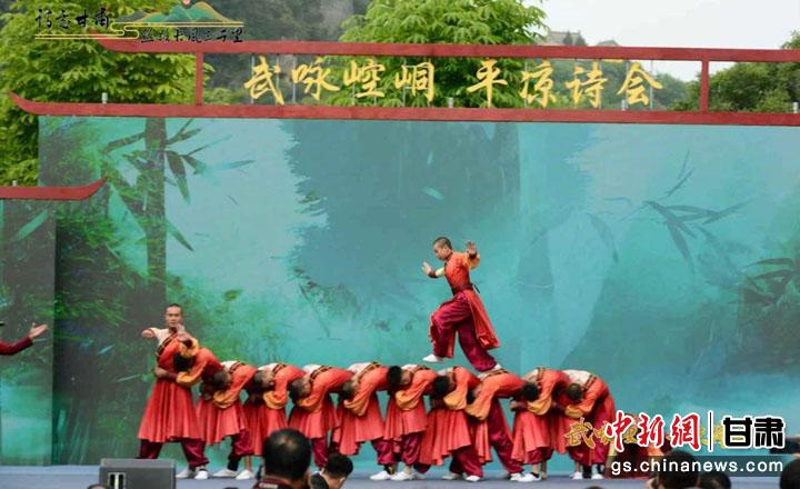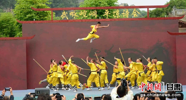 中新網(wǎng)甘肅新聞9月2日電 9月1日,詩意甘肅·絲路長風(fēng)三千里——“武詠崆峒·平?jīng)鲈姇?huì)”在崆峒山景區(qū)舉行,來自全國各地的媒體記者、網(wǎng)絡(luò)達(dá)人和游客,以及平?jīng)霎?dāng)?shù)馗刹咳罕姶砉?00余人現(xiàn)場(chǎng)觀看了演出活動(dòng)。