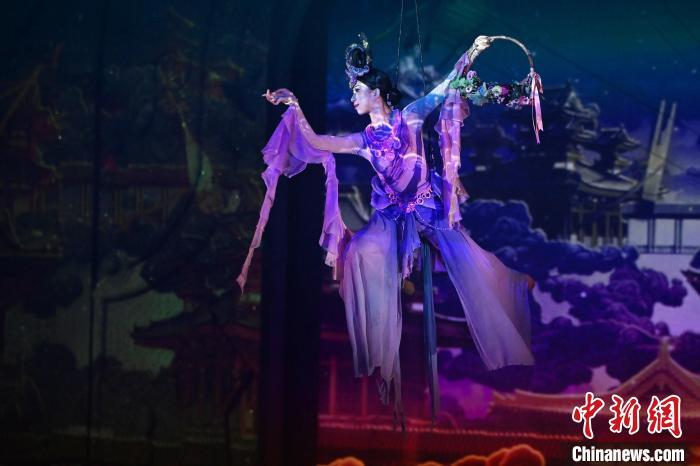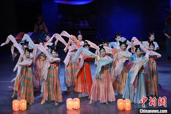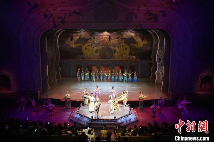 9月5日晚,甘肅敦煌旅游熱度不減,眾多游客觀看大型洞窟式沉浸體驗劇《樂動敦煌》。該劇溯源敦煌文化,借助對莫高窟壁畫、藏經洞古籍進行解讀,用全息投影、3D威亞等高科技手段,以全沉浸式的呈現(xiàn)方式,演繹西域少年追尋藝術的傳奇故事。劇中運用了琵琶、排簫、阮等民族樂器及仿制敦煌古樂器的音色,通過胡旋舞、腰鼓舞、琵琶舞等典型舞蹈,展現(xiàn)了敦煌壁畫中的樂舞盛景,全面展現(xiàn)敦煌傳承千年的樂舞文化魅力。九美旦增 攝