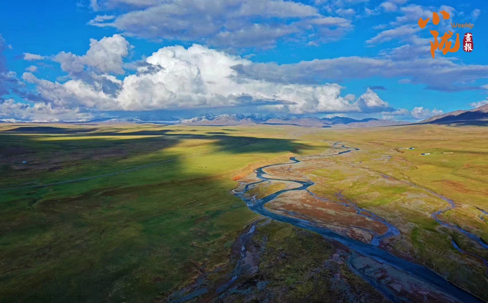 這里水草豐盈,生態(tài)和諧,碧綠的牧場(chǎng),潔白的羊群,飄飛的經(jīng)幡,給寧靜的草原,注入了空靈的氣息。
