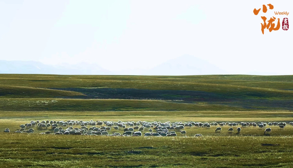 羊群猶如無數(shù)顆珍珠灑落在滿目的金色里,為這片廣袤的大地增添了無限的色彩,使得整個(gè)草原動(dòng)靜相宜。