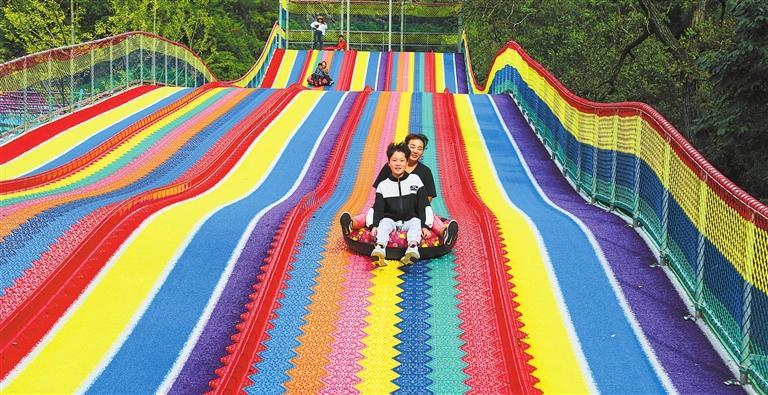 10月2日,游客在隴南市武都區(qū)五馬“網(wǎng)紅”童話小鎮(zhèn)體驗(yàn)彩虹滑道。新甘肅·甘肅日報(bào)通訊員 李旭春