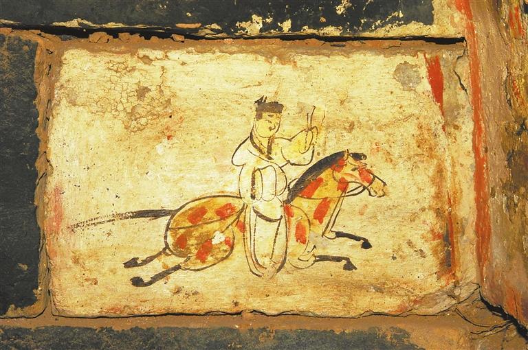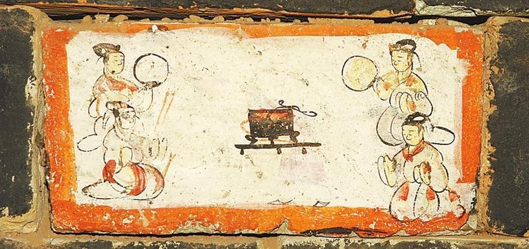 許三灣城魏晉十六國(guó)墓,20世紀(jì)90年代發(fā)掘,出土有彩繪畫像磚,有前秦建元十四年(公元378年)紀(jì)年磚。