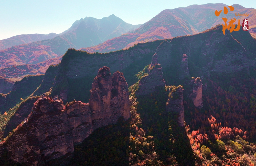 陽(yáng)光下,山間的樹(shù)林逐漸換上了金黃色,為山巒增添了更多的色彩。