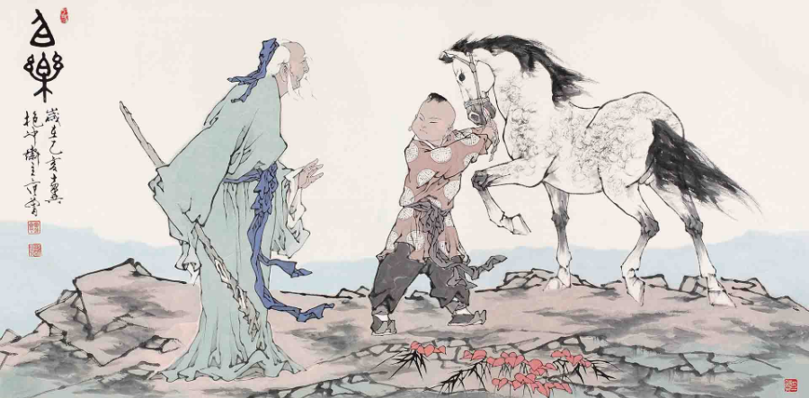 范曾 國(guó)畫作品《伯樂(lè)圖》。
