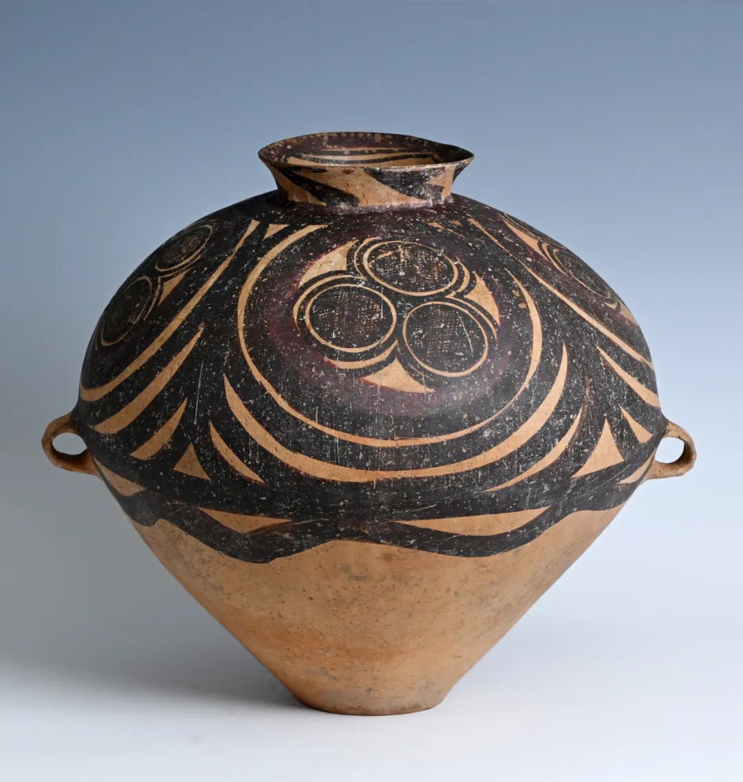 馬家窯文化創(chuàng)造了大批彩陶藝術(shù)精品,被譽(yù)為新石器時(shí)代彩陶之冠。形式優(yōu)美的漩渦紋是馬家窯類型的典型代表作,精美的半山類型彩陶又被公認(rèn)為馬家窯文化的巔峰階段,這一時(shí)期的彩陶器形勻稱圓潤(rùn),紋樣采用黑紅兩色繪制,更加繁麗精致,器具造型和圖案渾然一體,給人帶來賞心悅目的美感享受。