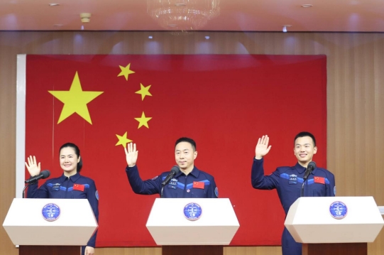 執(zhí)行神舟十九號載人飛行任務(wù)的蔡旭哲、宋令東、王浩澤三名航天員,北京時間二零二四年十月三十日凌晨啟程并于當(dāng)天中午順利入駐“天宮”。欣悉航天員給這一乘組分別起了別開生面的昵稱。指令長蔡旭哲根據(jù)生肖,稱三人是“龍馬乘組”。航天員宋令東因三個人分別來自河北與山東,稱其為“大好河山”組合。更多國人則因?yàn)樗瘟顤|和王浩澤同屬“九零后”稱這一乘組合為“青蔥乘組”。而宋令東出發(fā)時振臂一呼:“九零后,我們也來了!”令筆者感奮命筆,寫照神十九“青蔥乘組”,調(diào)寄《臨江仙》——