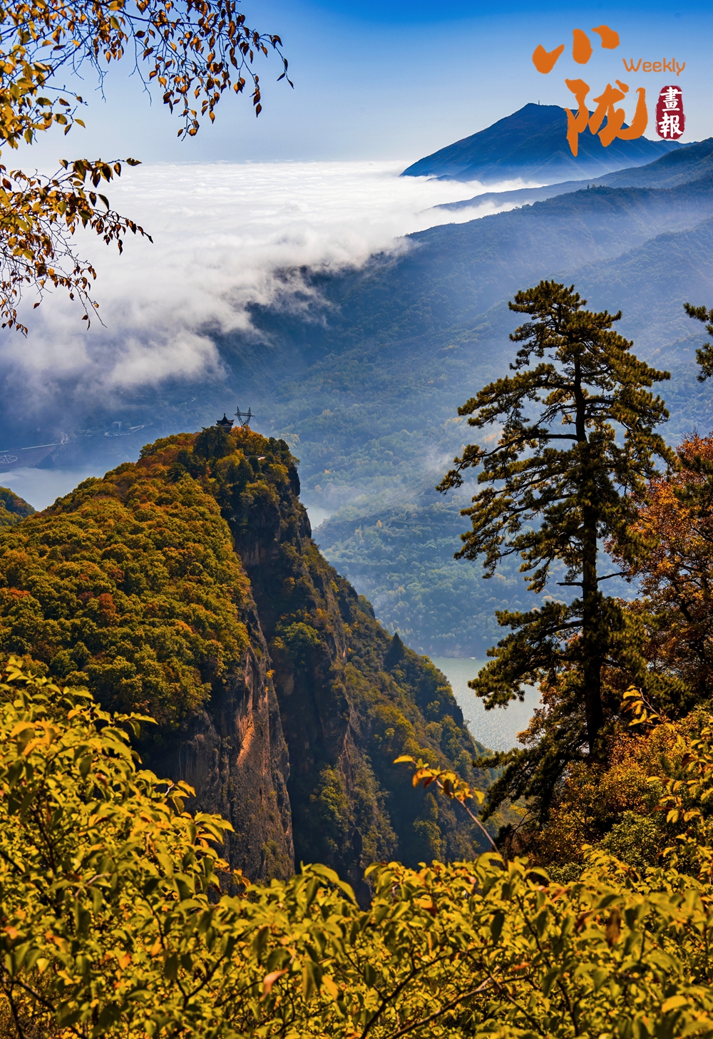 云霧繚繞,金黃的葉子似金色海洋,覆蓋山脈,在陽光照耀下散發(fā)著溫暖光芒,仿佛為崆峒山披上了璀璨外衣。