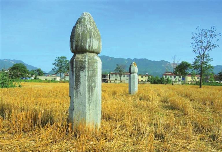 田野之中保存完好的八楞蓮包頭華表。