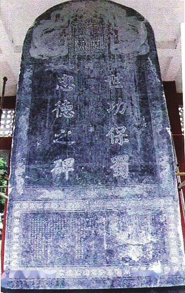 碑陽(yáng)額刻二龍圖,篆“皇帝宸翰”,字徑0.22米,碑身刻宋寧宗書“世功保蜀忠德之碑”八字,楷書豎行2行,行間刊有篆書“敕令寶璽”和楷書“修政殿書”八個(gè)小字,四周環(huán)刻八龍騰云圖。碑文刻吳挺之子吳曦自記《感恩表記》,碑文楷書計(jì)8461字,內(nèi)容記載吳氏三代抗金保蜀的功績(jī)。